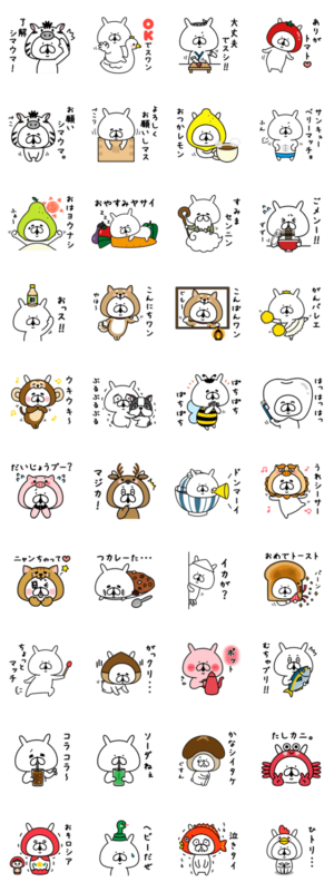 ゆるうさぎの使えるダジャレスタンプ第2弾!家族や友達、彼氏彼女と一緒にダジャレで楽しく会話してね!