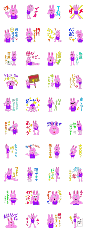 息子 娘 子ども 子供 我が子 こどもに送るスタンプ ビビッド うさぎ キモカワ 派手 ママ 母 おばあちゃん 祖母 家族 小学生 中学生 高校生 学生 カラフル 日常 会話