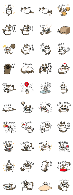 ゆるいシャムねこちゃんのスタンプです。お寿司が好きです。のべ子 より発売