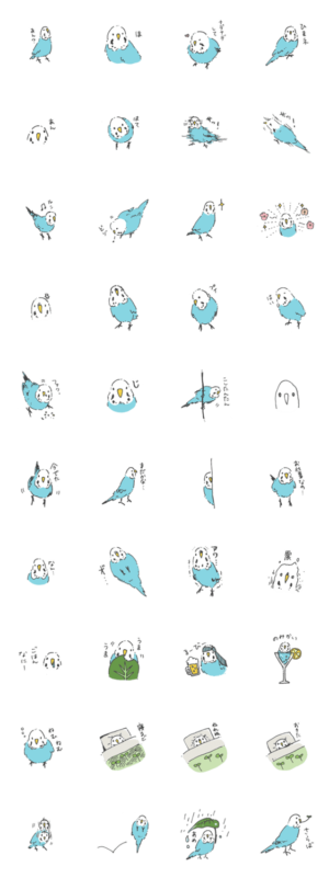 セキセイインコのしーちゃんのスタンプです。 元気いっぱいです。theta より発売