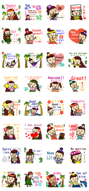 英語と日本語 フラダンスでっこちゃん スタンプ画像一覧