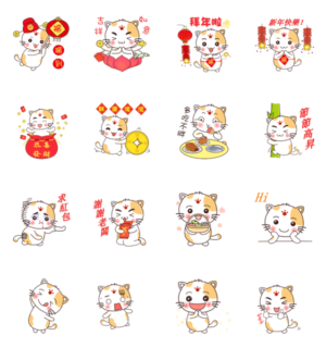 可愛くて面白いネコ、眉毛の茶々丸スタンプの中国台湾旧正月春節新年編!厳選されたスタンプと毎日使えるフレーズを集めました♪ トーク画面を可愛くさせます。