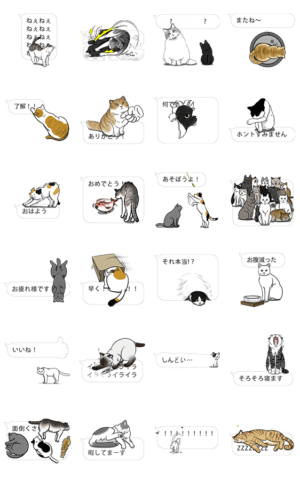 群がりすぎてて吹き出しが見えないw猫好きでない人にも好評です!