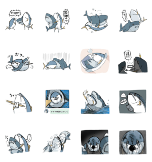 父からサメのぬいぐるみをプレゼントされた子マグロのスタンプです。魚類 より発売