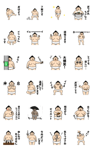 稽古用のまわしを締めたお相撲さん。廻し姿のまま電車に乗ったり謝罪会見をしたり電柱に隠れたり、シュールな力士の日常が描かれているので便利で使いやすいスタンプです!くーが より発売