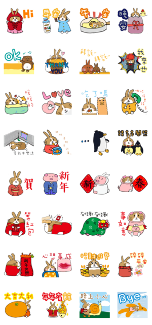 Rice rabbit and good friends gossip. スタンプ画像一覧