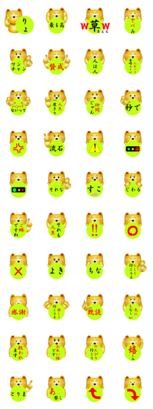 金のしあわせ招き猫パート6です。一言で気持ちが伝わるスタンプです。流行りの一言もたくさん入っています。