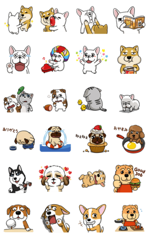 明るすぎる犬のスタンプで元気で可愛い犬のスタンプです。特に『ねえねえ』と甘えているスタンプはとても可愛いのでぜひダウンロードしてみて下さい。