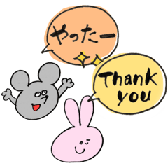 吹き出し絵文字が小さくなったので動物を添えてスタンプにしました。初登場、ねこみずの友達からです。着せ替えもあるよ。