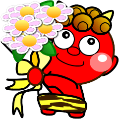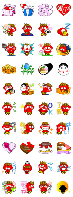 毎日楽しく使える赤い鬼ちゃんの可愛いスタンプです。節分とバレンタインのスタンプもあります。ohausa より発売