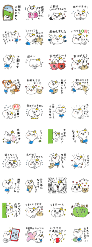 女子力高めな白猫、ネコ子の敬語&大人の気づかいスタンプです。誰にでも使いやすい言葉を中心に、思いやりと気配りをぎゅっと詰め込みました。