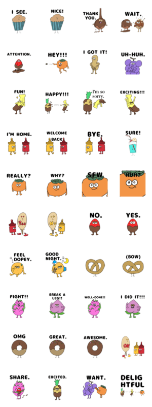 愉快でおかしな食べ物たち(英語バージョン) スタンプ情報