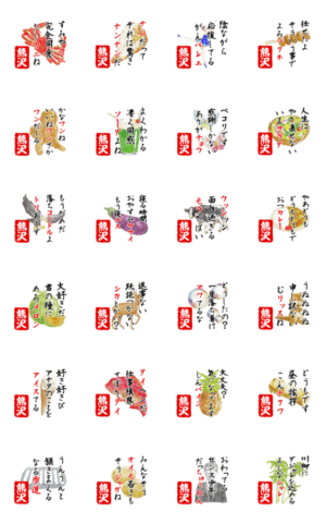 熊沢(くまざわ.くまさわ)さん用の動く川柳スタンプ第2弾のダジャレ編です。俳句的な五・七・五のリズム!byふるふるもんきー