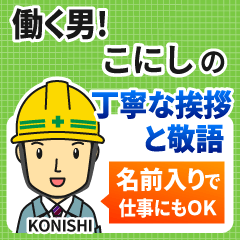 働く男の名前入り丁寧敬語挨拶!安全ヘルメットで現場仕事にもOK[小西/こにし/コニシ/古西/児西/小丹枝/来西/湖西/戸西/胡西/高西/瑚西/猫西/香西]土木建築/姓名/職人/建設お名前入りスタンプ専用★アイシスデザイン株式会社 より発売