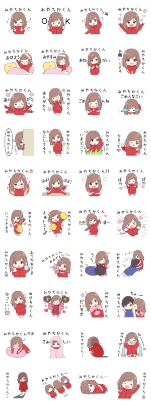 みやちかくんに送る専用のジャージちゃんスタンプ第1弾です。大好きな「みやちかくん」に呼びかけます。