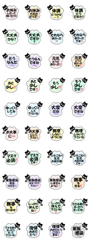 友達や友達の子、大事な人、先輩や上司が学校や仕事をお休みした時に使える可愛い肉球のお見舞いスタンプです。sirius より発売