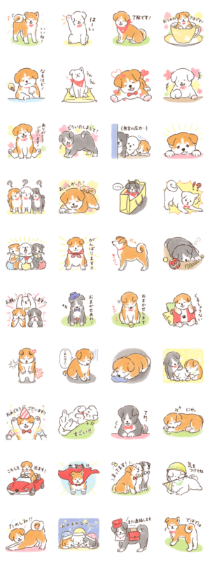 もふもふ、無邪気で、時にはしぶーい顔もする秋田犬の子犬たち。ほんのわずかな子犬期間の豊かな表情を集めた、日常使いできるスタンプです。