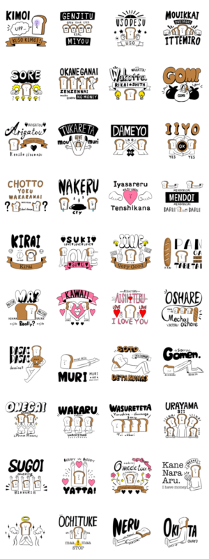 英語のロゴでオシャレぶった食パン スタンプ画像一覧
