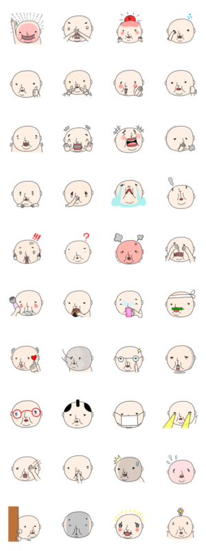 ゆり子ばら子の手書きスタンプ第7弾。表情豊かな丸坊主。まるくてかわいくておもしろくて使いやすい!絵文字として文の後に使っても良し!気持ちが伝わること間違いなし!ゆりこばらこ より発売