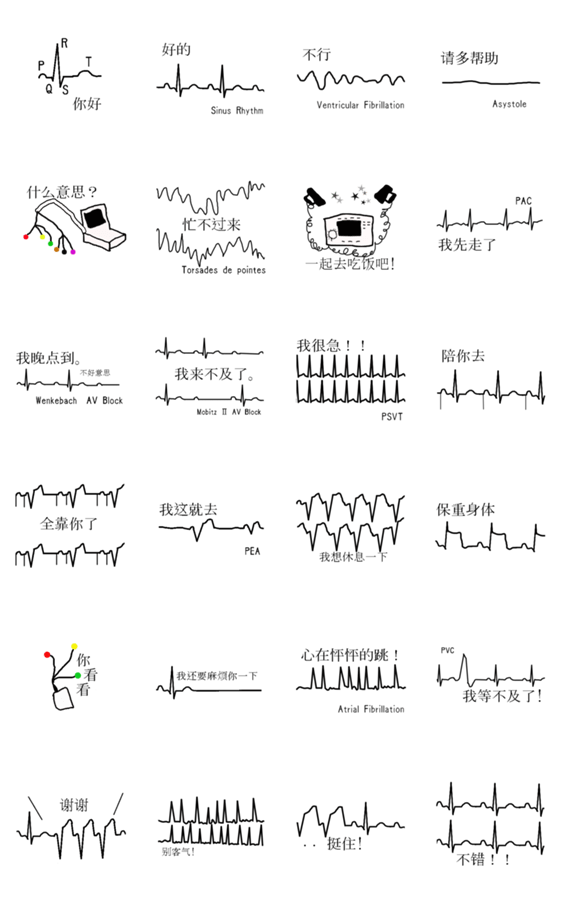 モニター心電図を中国語簡体字で。 循環器内科で働く医師、看護師、臨床検査技師、理学療法士、医学生、看護学生など中国語勉強中の方へ。心臓 ナース ハート ICU 救急医療もつみ より発売