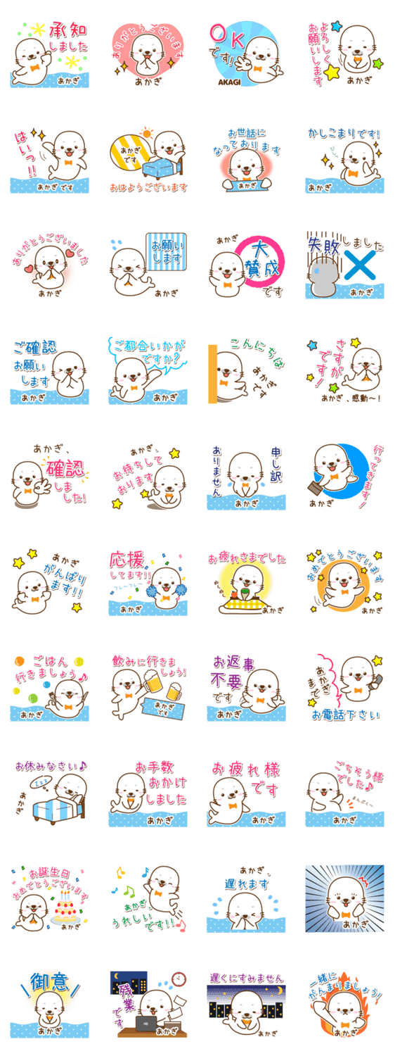 しろくて丸いアザラシ!白あざらしのカワイイごまるは日常や仕事にOK[赤木/あかぎ/アカギ/垢木/明城/赤井/赤城/赤来/赤鬼]敬語丁寧挨拶/名前入り/専用/苗字/男女/姓名/毎日お名前入りスタンプ専用★アイシスデザイン株式会社 より発売