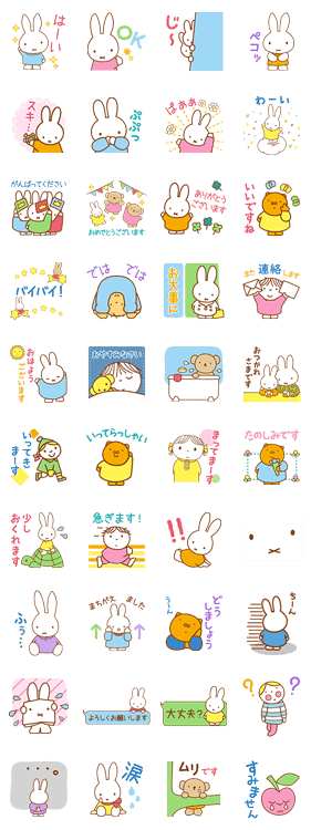 ミッフィー初!パステルカラーの日本語入りスタンプが登場!毎日の会話に使いやすい♪丁寧語もいっぱい。ミッフィーのほんわか可愛いスタンプで気持ちを伝えよう!
