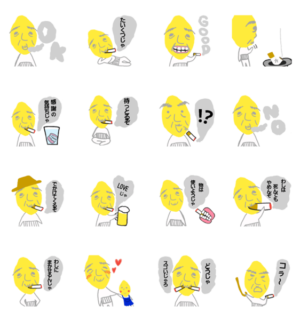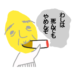 煙草がやめられなくて煙が吹き出しのようになっている、れもんのおじいさんスタンプ。 たばこ、タバコ好き、喫煙、入れ歯、お酒、おじいちゃん、元気、孫、おもしろい。きゃんでぃもんすたー より発売
