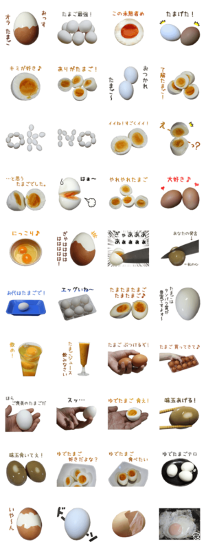 卵の写真で作った実写スタンプです!栄養たっぷりで色々な食べ方が楽しめる食べ物といえばタマゴ!料理では主役にも脇役にもなる万能食材♪ゆで卵、味玉、煮卵、エッグ!竹野チコ より発売