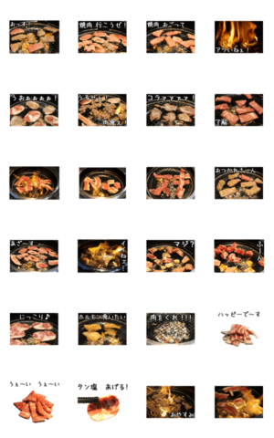 焼き肉の動くスタンプです!お肉を焼いているシーンで食欲湧きまくり!最強の飯テロスタンプです♪ヤキニク、タン塩、ホルモン最高!実写食べ物スタンプシリーズ。竹野チコ より発売