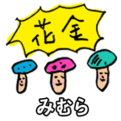 みむら専用死語スタンプ。カラフルきのこがゆるーく懐かしの昭和の流行語を話すよ。イッレ・コスヤ より発売