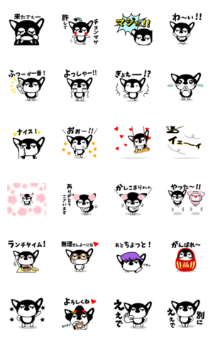 チワワのダブ。普段使いにぴったりのふつーのスタンプ。春に使える桜もあるよ。