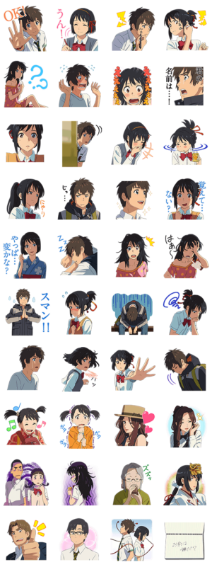 新海誠監督による大ヒットアニメーション映画「君の名は。」のスタンプがいよいよ登場!劇中の名シーンが満載のスタンプでトークを盛り上げよう!東宝 より発売