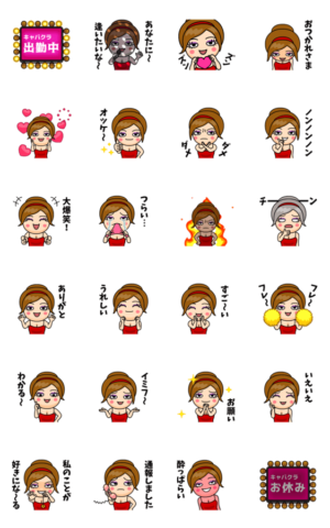 キャバ嬢がお客さんに対して使える動画スタンプです。キャバクラチックな出で立ちでお客さんをおもてなししましょう!歌舞伎町、六本木、銀座で熱い!?くーが より発売