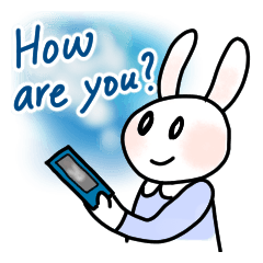ワンピースがお気に入りのうさぎの女の子「うー」。ていねい言葉でごあいさつします。大きめ文字で普段使いワードの、かわいいスタンプです。 こちらは英語版です!
