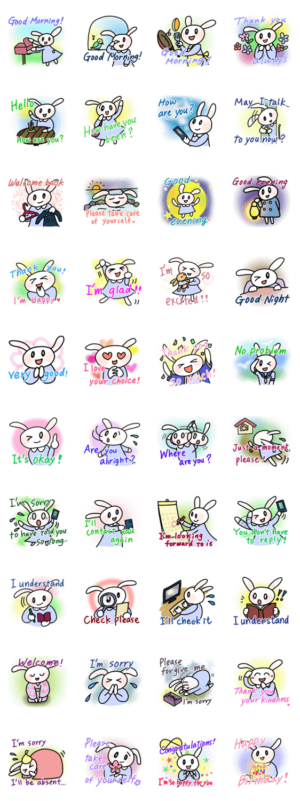 英語版!うさぎの「うー」3。ていねい言葉 スタンプ画像一覧