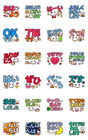 敬語です★オシャレ可愛い大人の挨拶&使える日常会話基本セット★気持ちを贈りキモチ伝える大きめデカでか文字!かわいく動く!親しみやすい表情の無難な顔文字シリーズあくあまりん より発売