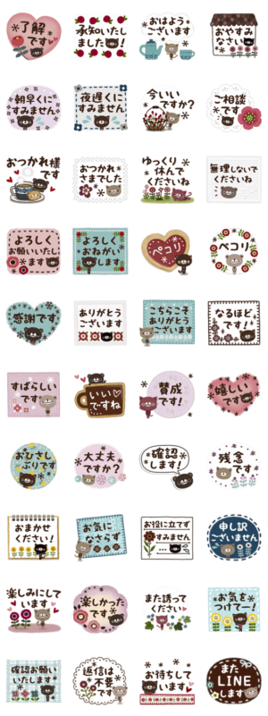 お花モチーフとセリフがメインの敬語セットです。シンプル&落ち着いた色味でどんな場面でも使いやすいです♪ママ友との連絡、PTAやお仕事関係に♪