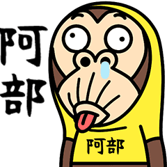 オシャレな『阿部』のTシャツを着た動くお猿さんのスタンプです。(阿部猿/アベ猿)セイコウ より発売
