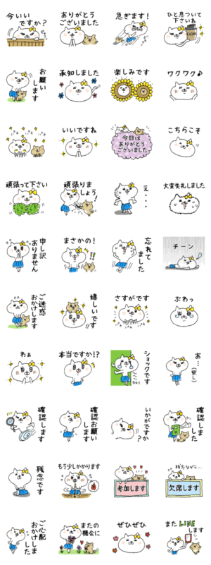 女子力高めな白猫、ネコ子の敬語&ていねい語スタンプ第2弾です。堅苦しくなく、使いやすい言葉を集めました。ネコ子がゆるっと丁寧にお返事します。