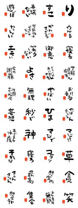 まりお(マリオ)さん専用、味わい深い筆文字のJK語スタンプ。イッレ・コスヤ より発売