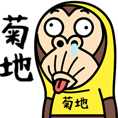 オシャレな『菊地』のTシャツを着た動くお猿さんのスタンプです。(菊地猿/キクチ猿)セイコウ より発売