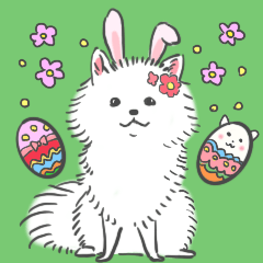 春、イースターの時期にぴったりのかわいいスタンプ♪ 白くてもふもふ可愛い日本スピッツですしろねこまんじゅう より発売