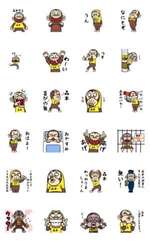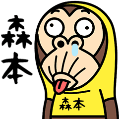 オシャレな『森本』のTシャツを着た動くお猿さんのスタンプです。(森本猿/モリモト猿)セイコウ より発売