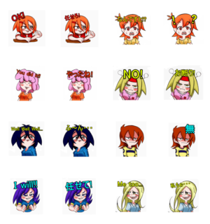 このスタンプは日本人カートゥーンアーティスト水口洋介によって作られたものです。 キャラクターは全てオリジナルで水口洋介著のコミックのキャラクターのスタンプです。