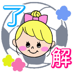 サッカーの部活に頑張る女の子/男の子/男子/女子/スポーツ少年団/スポ少応援ママスタンプ/承知致しました/了解/お大事にして下さい/おめでとう/かわいい/挨拶/敬語