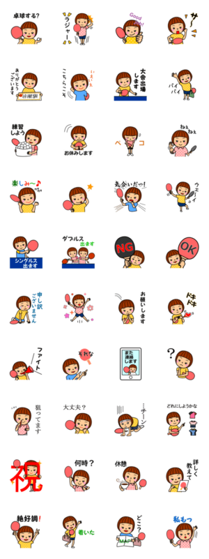 卓球大好き少女が日常で使えるスタンプです。卓球仲間と楽しく盛り上がりましょう。アトリエM より発売