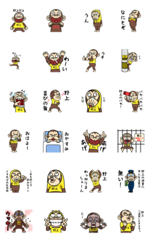 オシャレな『野上』のTシャツを着た動くお猿さんのスタンプです。(野上猿/ノガミ猿)セイコウ より発売