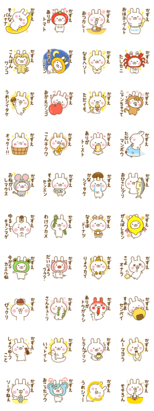 ゆる~く、かわいい、うさぎ(うさひな)の☆かずえ☆和江、和恵、佳津江の死語、ダジャレ名前スタンプです♪