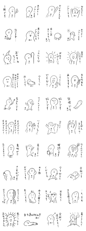 【きい】用。「ど」がつくほどシンプルなスタンプ。敬語丁寧語ベースで仕事や先輩にも使いやすい。にこにこ明るくゆる〜い表情でレッツ会話!