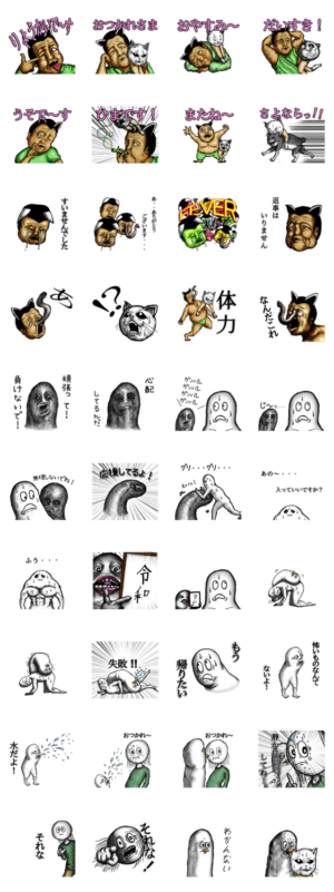 バケモノおじさんとその仲間のバケモノたちのスタンプです。かに味噌 より発売